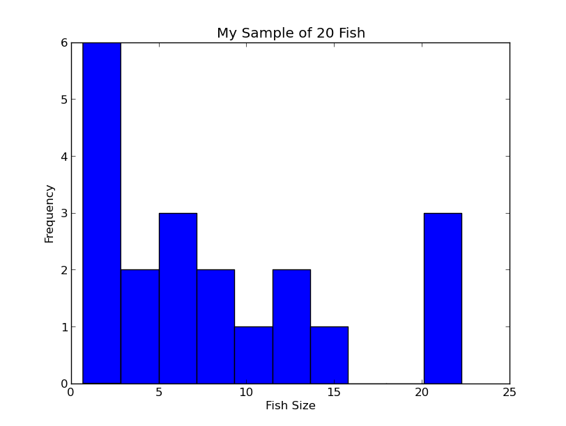 If I catch a sample of 20 fish, randomly selected, my sample will probably reflect the true population distribution. Here are the weights (in lbs.) of the fish I caught:
